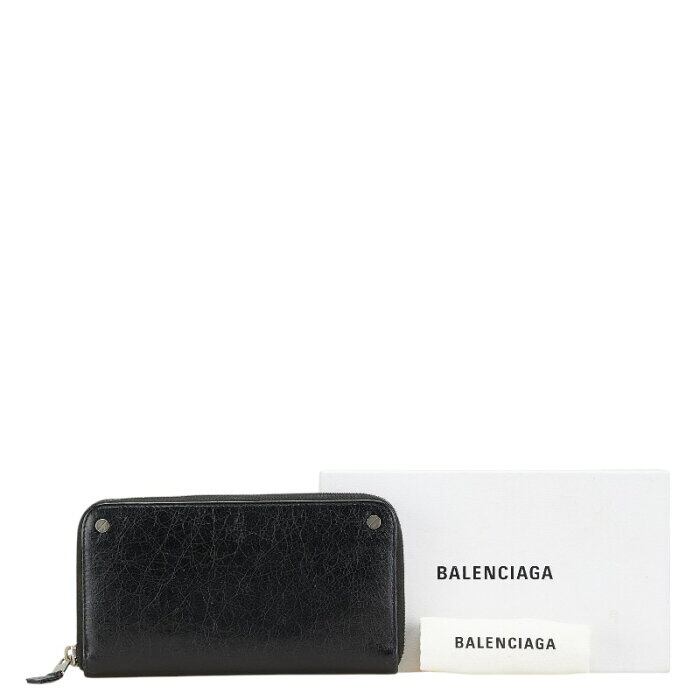 バレンシアガ 長財布 ラウンドファスナー 541996 ブラック シルバー レザー メンズ BALENCIAGA 【中古】