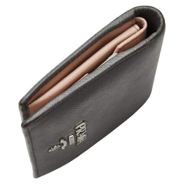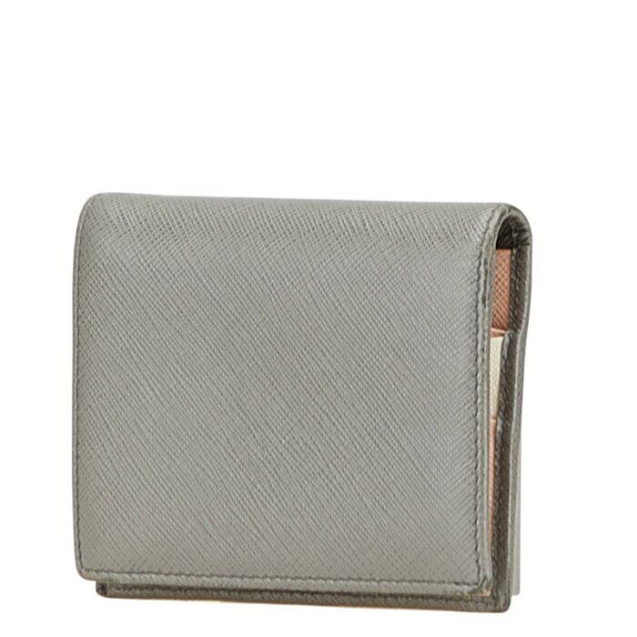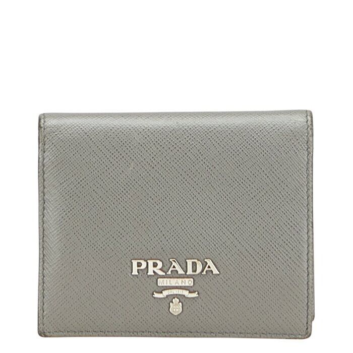 プラダ ロゴ 二つ折り財布 グレー レザー レディース PRADA 【中古】