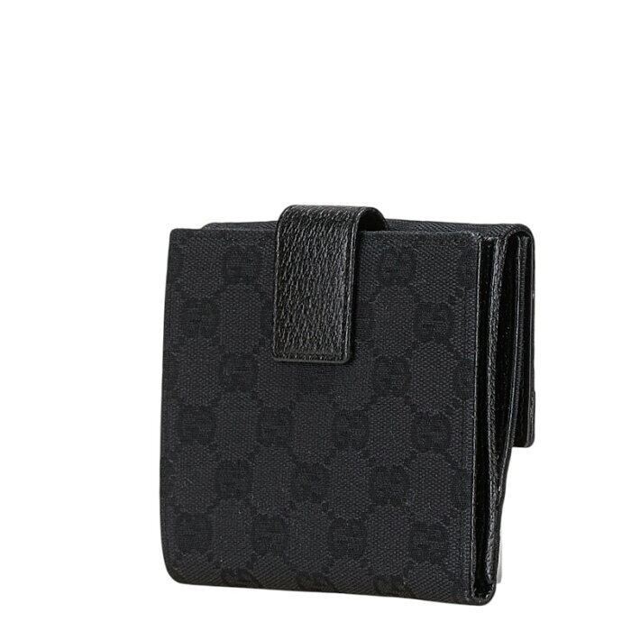 グッチ GGキャンバス スタッズ 二つ折り財布 120922 ブラック キャンバス レザー レディース GUCCI 【中古】