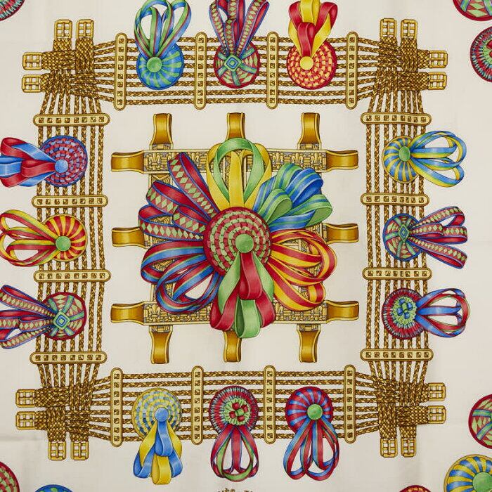エルメス カレ90 LES RUBANS DU CHEVAL 馬のリボン スカーフ ピンク マルチカラー レディース HERMES 【中古】