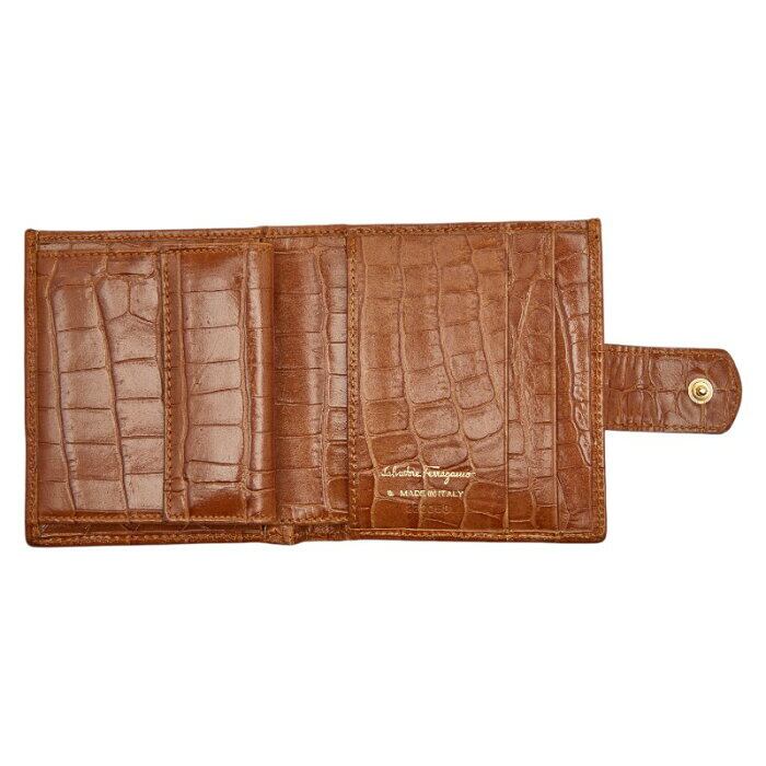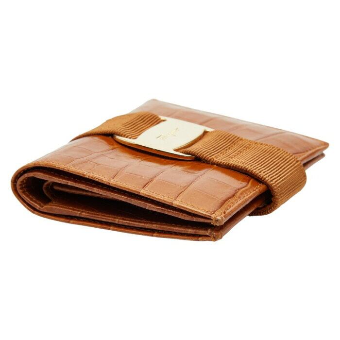 サルヴァトーレフェラガモ ヴァラリボン 二つ折り財布 ブラウン レザー クロコ型押し レディース Salvatore Ferragamo 【中古】