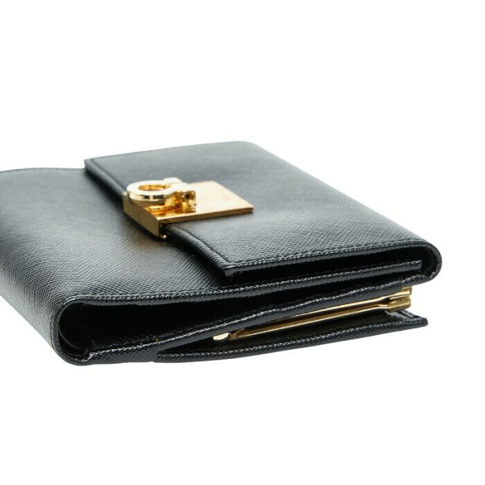 サルヴァトーレフェラガモ ガンチーニ がま口 二つ折り財布 AQ-228593 ブラック レザー レディース Salvatore Ferragamo 【中古】