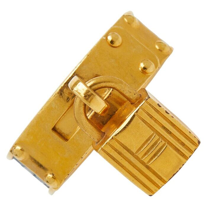 エルメス ケリー カデナ モチーフ スカーフリング ゴールド ネイビー メッキ レザー レディース HERMES 【中古】