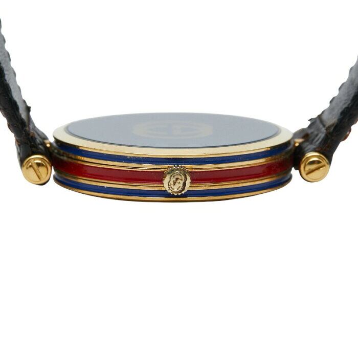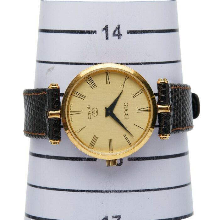 グッチ シェリーライン 腕時計 クオーツ ゴールド文字盤 ステンレススチール レザー レディース GUCCI 【中古】