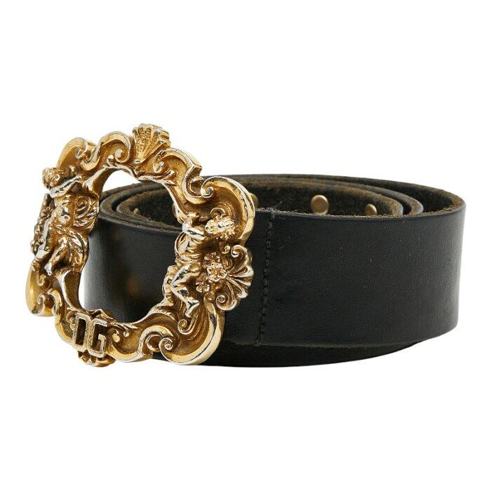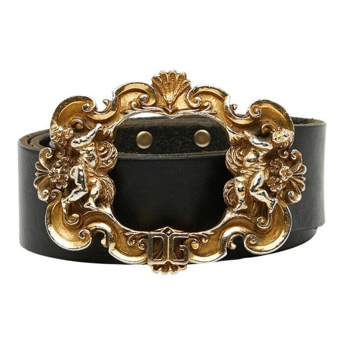 ドルチェアンドガッバーナ DGロゴ エンジェル スタッズ ベルト サイズ:85 34 ブラック レザー レディース DOLCE&GABBANA 【中古】