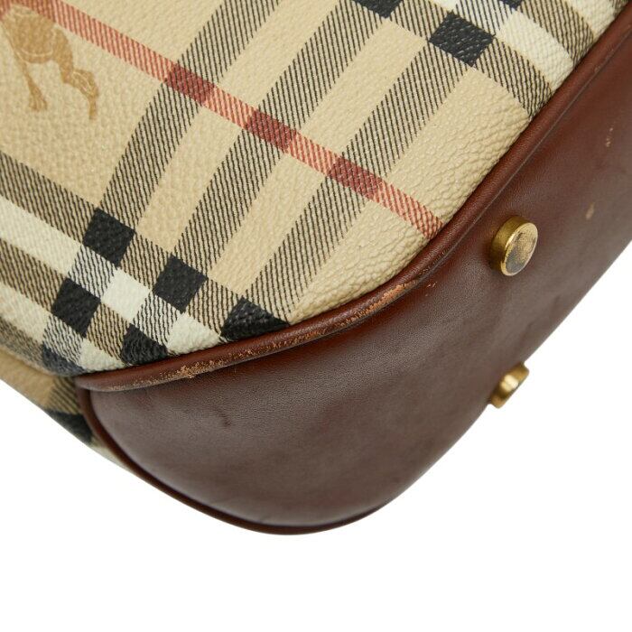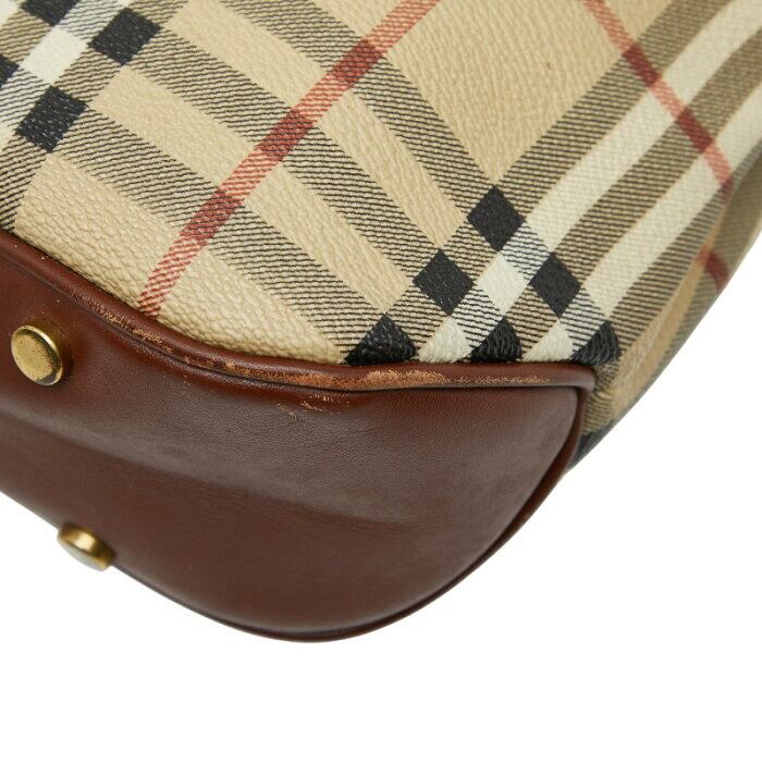 バーバリー ノバチェック シャドーホース ハンドバッグ ベージュ ブラウン PVC レザー レディース BURBERRY 【中古】