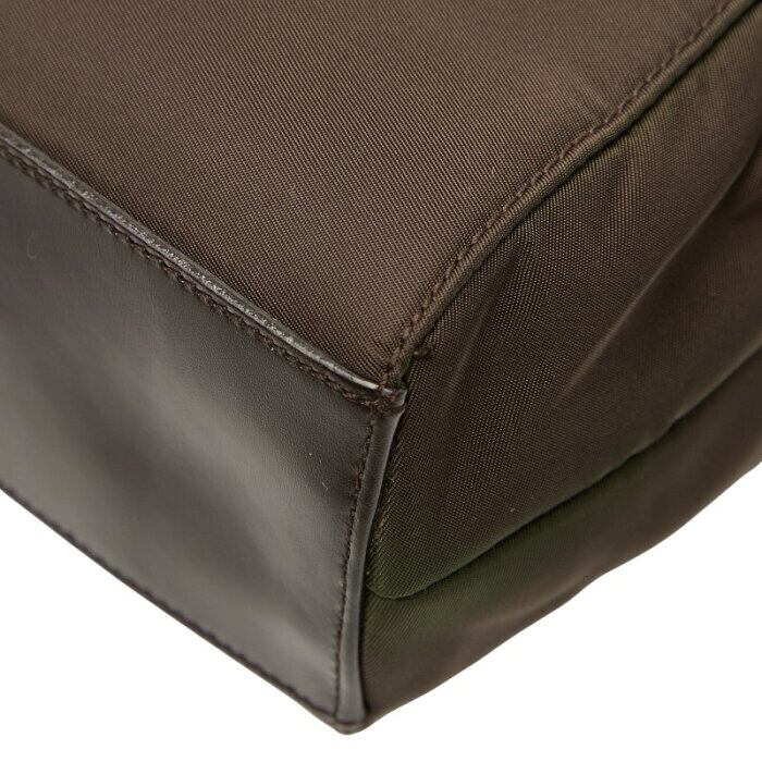 プラダ 三角ロゴプレート ハンドバッグ ブラウン グリーン ナイロン レザー レディース PRADA 【中古】