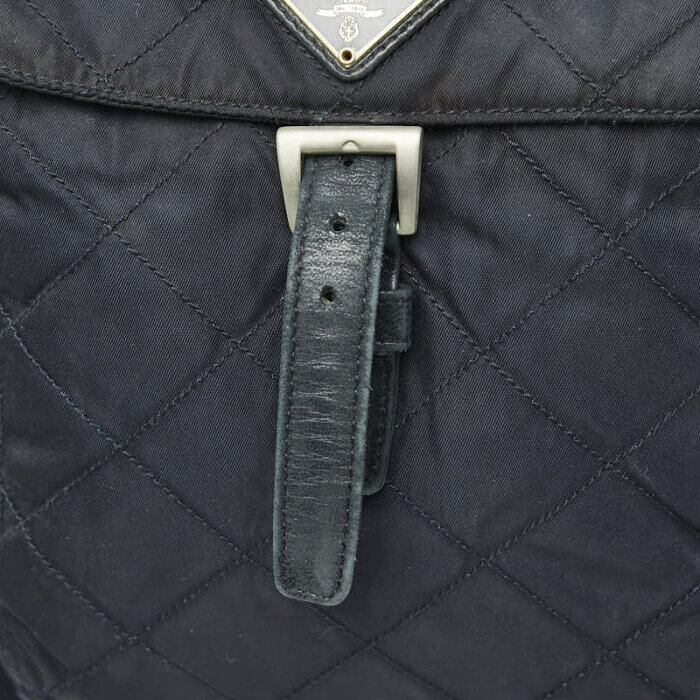 プラダ 三角ロゴプレート リュック バックパック ネイビー ナイロン レザー レディース PRADA 【中古】
