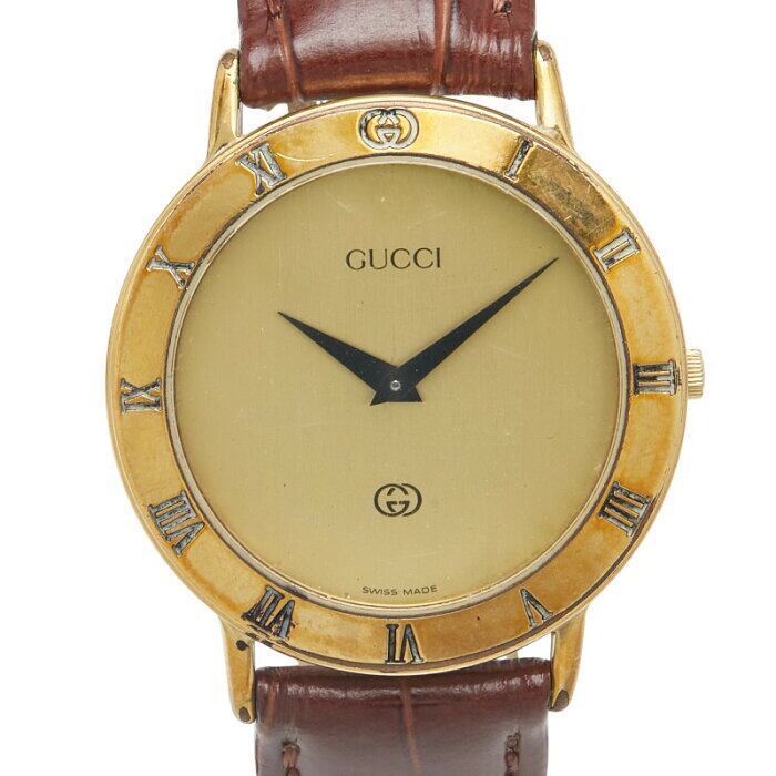グッチ インターロッキングG ベルト(社外品) 腕時計 3000M クオーツ ゴールド文字盤 メッキ レザー レディース GUCCI 【中古】