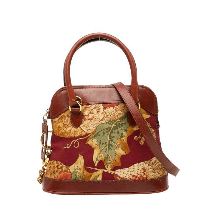 サルヴァトーレフェラガモ ボタニカル柄 ハンドバッグ ショルダーバッグ 2WAY ブラウン マルチカラー レザー ナイロン レディース Salvatore Ferragamo 【中古】
