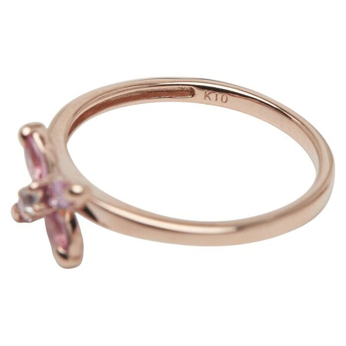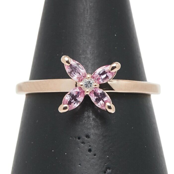 K10PG ピンクゴールド ピンクサファイア キュービックジルコニア 花 フラワーモチーフ リング 指輪 レディース 12.5号 【中古】