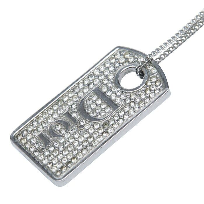 ディオール ロゴドッグタグ ペンダントネックレス シルバー メタル ラインストーン レディース Dior 【中古】
