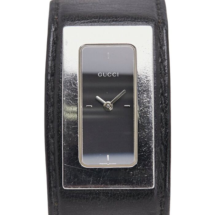 グッチ バングルウォッチ 7800S クオーツ ブラック文字盤 ステンレススチール レザー レディース GUCCI 【中古】