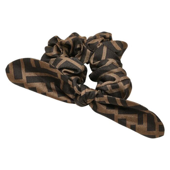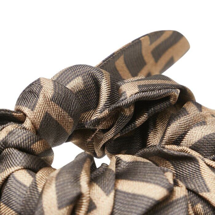 フェンディ ズッカ リボン シュシュ ヘアゴム F1BWS ブラウン ブラック シルク レディース FENDI 【中古】
