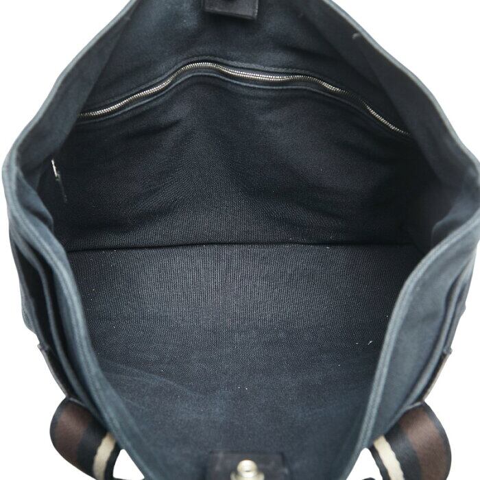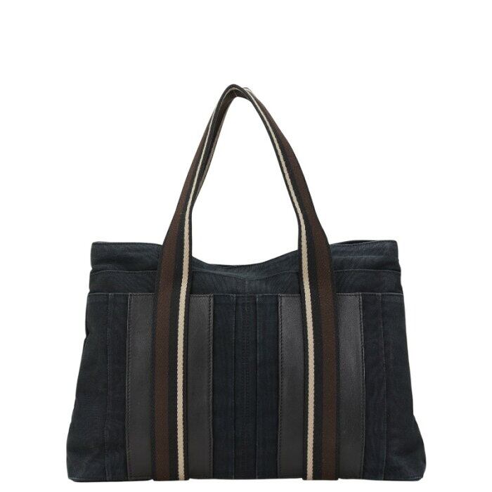 エルメス トロカホリゾンタルMM トートバッグ ブラック ブラウン キャンバス レザー レディース HERMES 【中古】