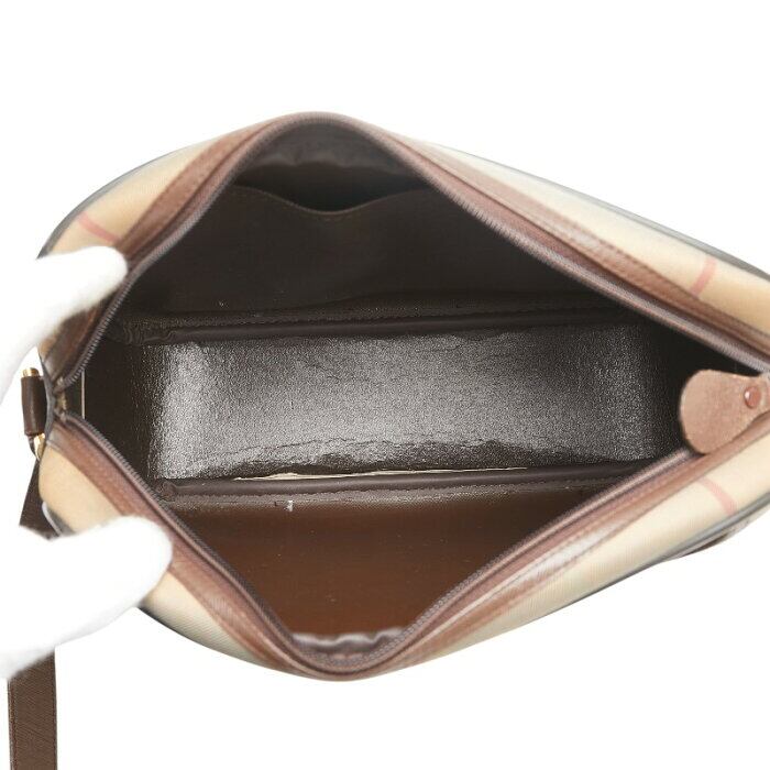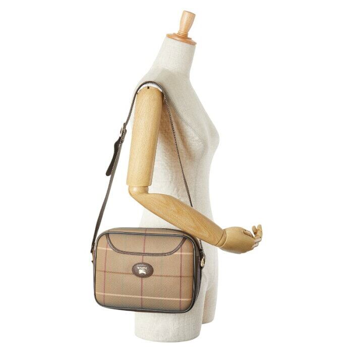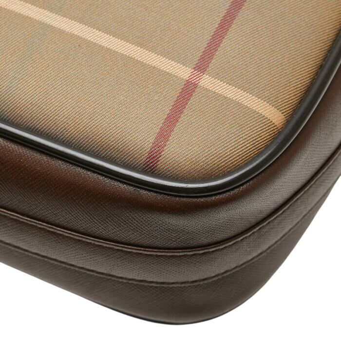 バーバリー チェック ショルダーバッグ カーキ ブラウン キャンバス レザー レディース BURBERRY 【中古】