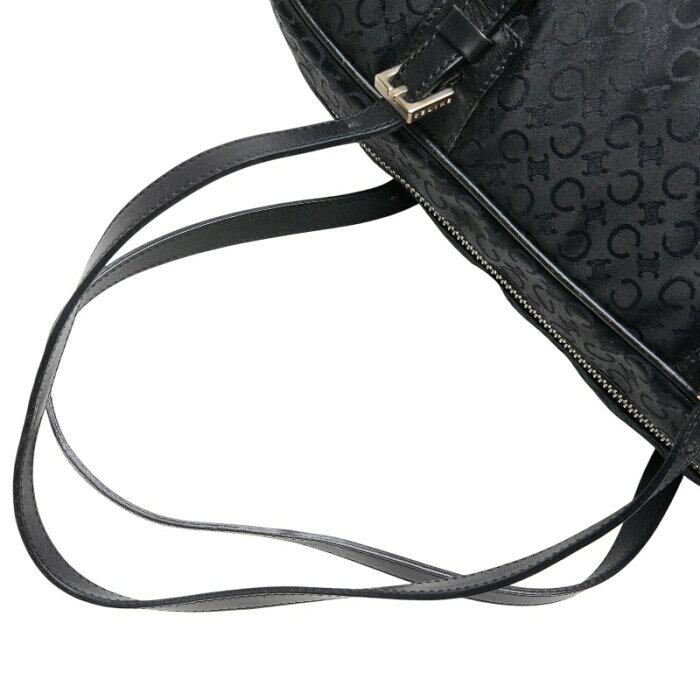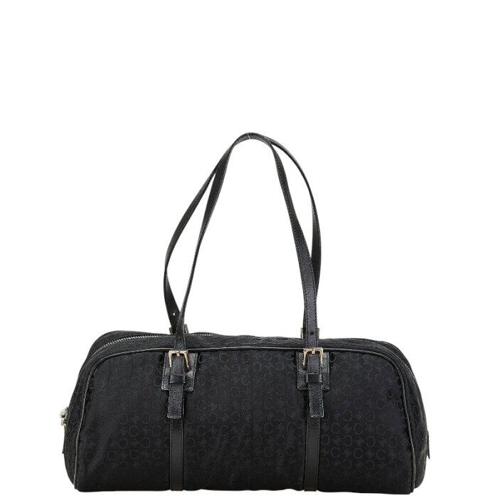 セリーヌ Cマカダム ハンドバッグ ミニボストンバッグ ブラック キャンバス レザー レディース CELINE 【中古】