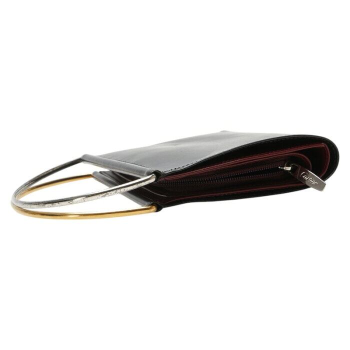カルティエ トリニティ ハンドルウォレット ブラック ゴールド シルバー レザー レディース CARTIER 【中古】