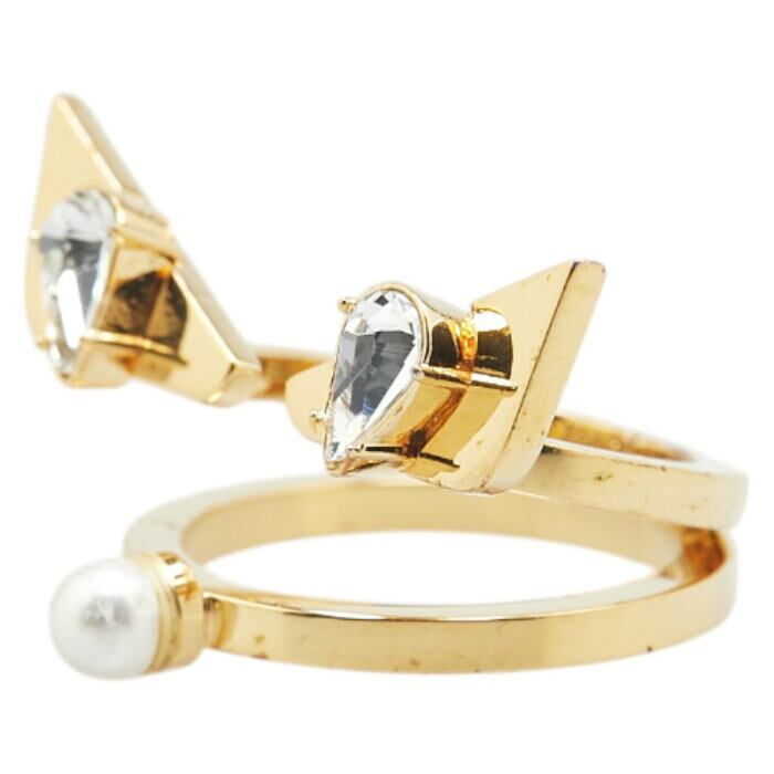 フェンディ バグズアイ モンスター リング 指輪 #S ゴールド メッキ フェイクパール レディース FENDI 【中古】