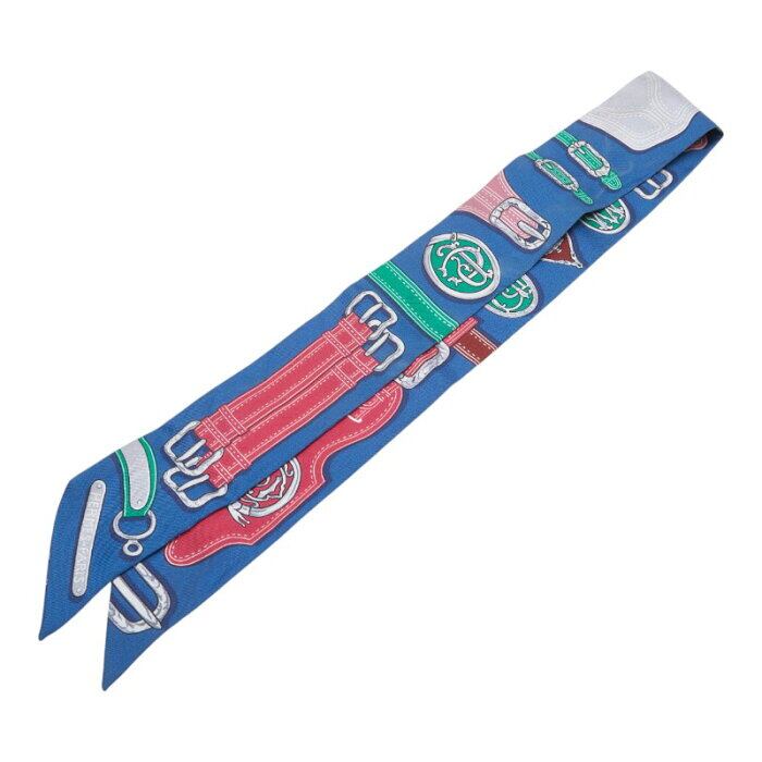 エルメス ツイリー ベルト モチーフ スカーフ ブルー マルチカラー シルク レディース HERMES 【中古】