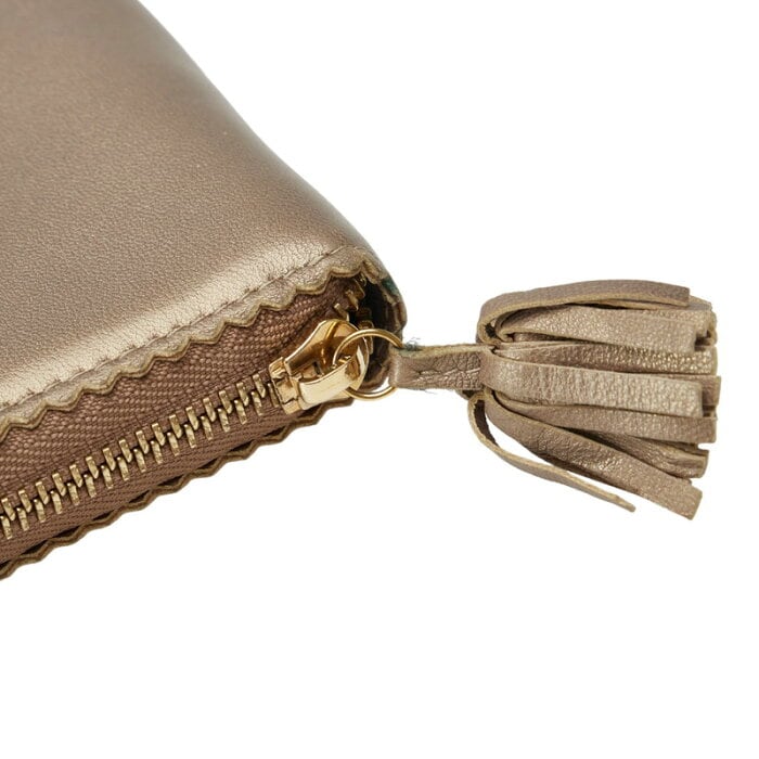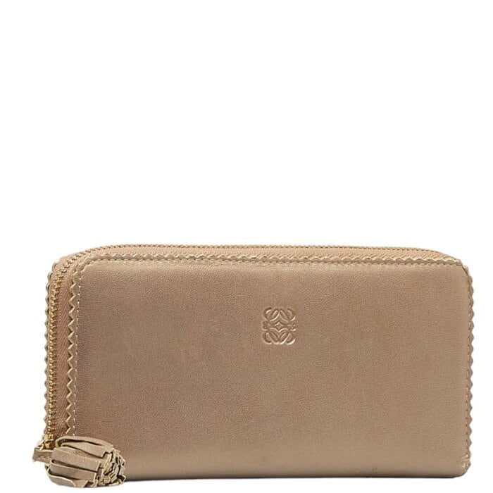 ロエベ アナグラム ミニタッセル ゴールド金具 長財布 シャンパンゴールド レザー レディース LOEWE 【中古】