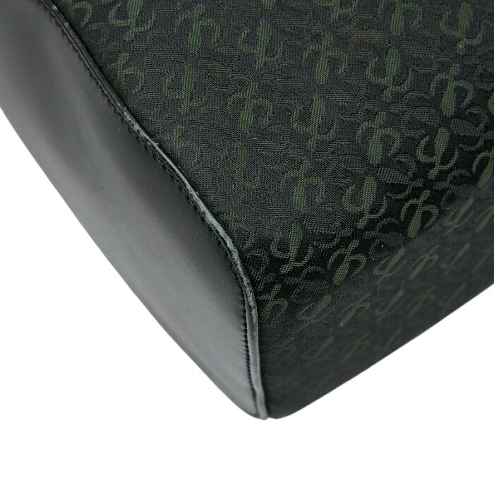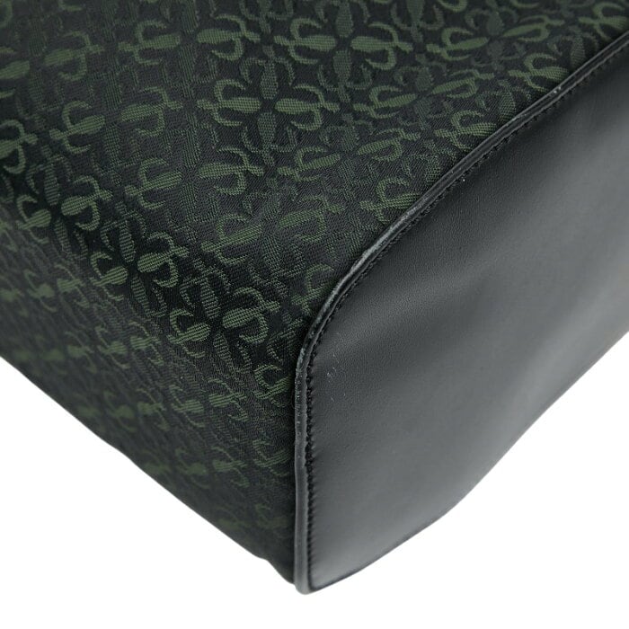 ロエベ アナグラム セカンドバッグ クラッチバッグ ブラック グリーン キャンバス レザー レディース LOEWE 【中古】