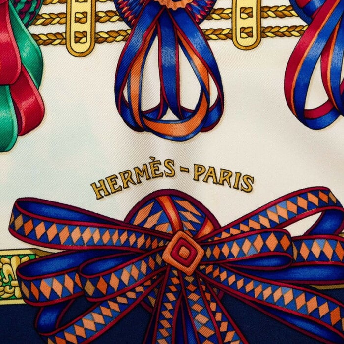 エルメス カレ90 LES RUBANS DU CHEVAL 馬のリボン スカーフ ネイビー マルチカラー シルク レディース HERMES 【中古】