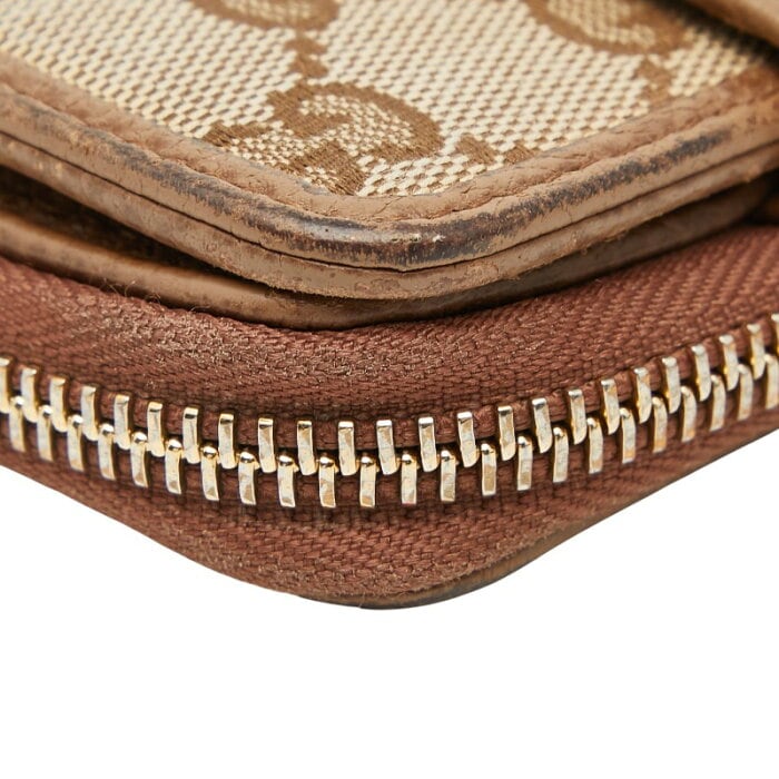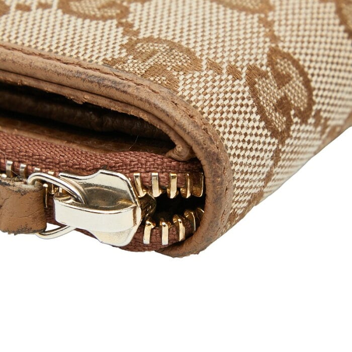 グッチ GGキャンバス - ラウンドファスナー 二つ折り財布 346056 ベージュ ブラウン キャンバス レザー レディース GUCCI 【中古】