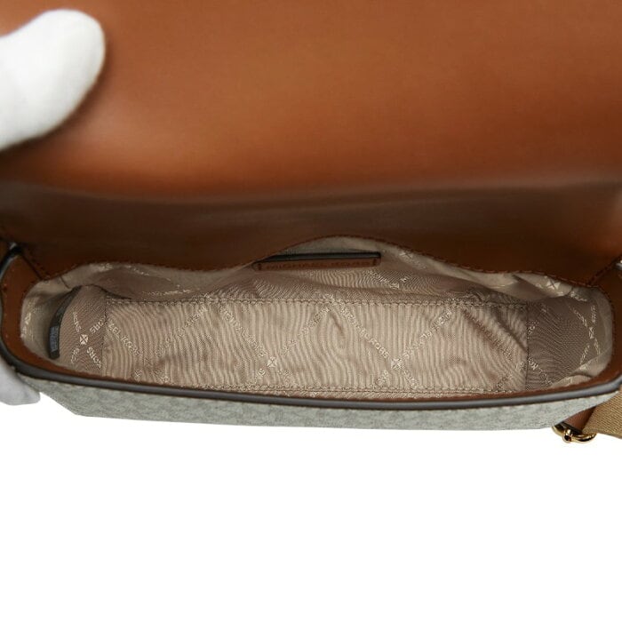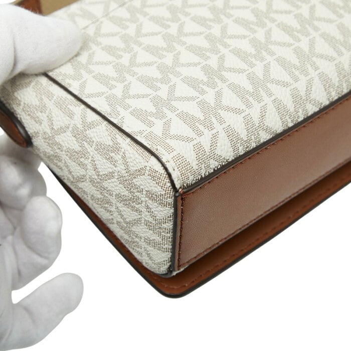マイケルコース MKシグネチャー ショルダーバッグ ホワイト ベージュ ブラウン PVC レザー レディース Michael Kors 【中古】