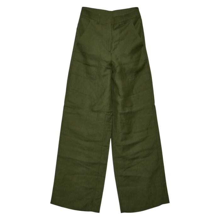 サルヴァトーレフェラガモ ワイドパンツ サイズ:38 カーキ コットン レディース Salvatore Ferragamo 【中古】