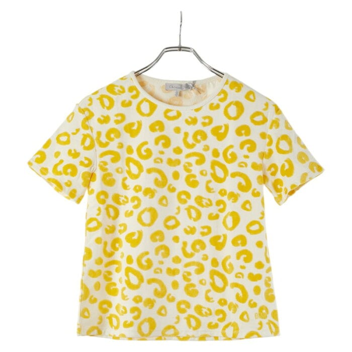 ディオール レオパード 半袖Tシャツ サイズ:12 イエロー ベージュ コットン レディース Dior 【中古】