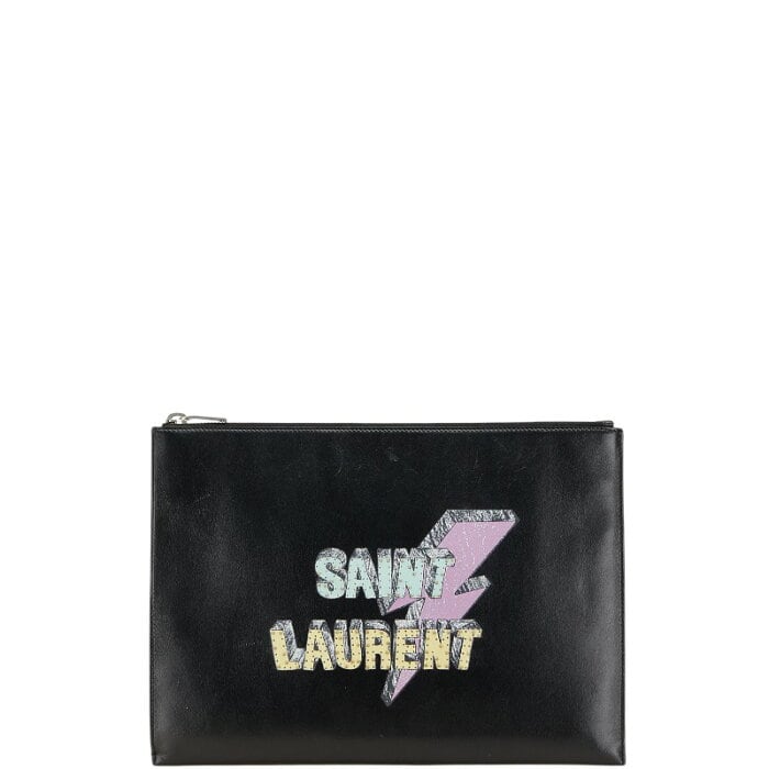 サンローラン SAINT LAURENT ロゴ プリント スタッズ iPad タブレットケース クラッチバッグ ブラック マルチカラー レザー レディース SAINT LAURENT 【中古】