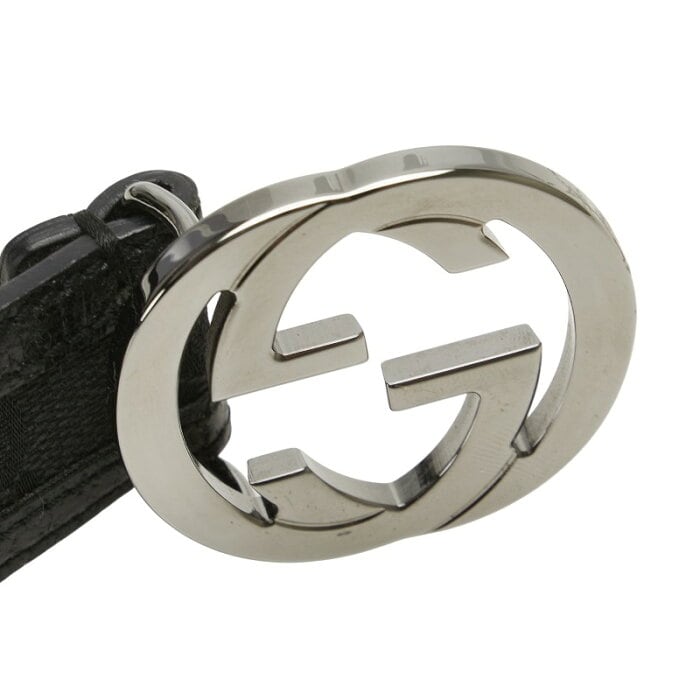 グッチ GGキャンバス インターロッキングG ベルト 80.32 114874 ブラック シルバー キャンバス レザー レディース GUCCI 【中古】