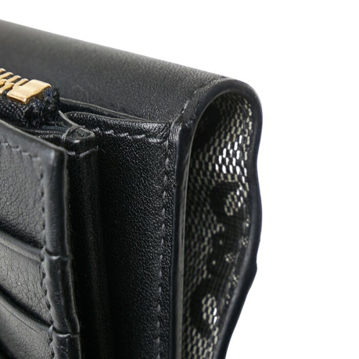 外側: コバひび割れ、スレ、フラップ・付け根・裏: キズ、小銭入れ: 薄汚れ