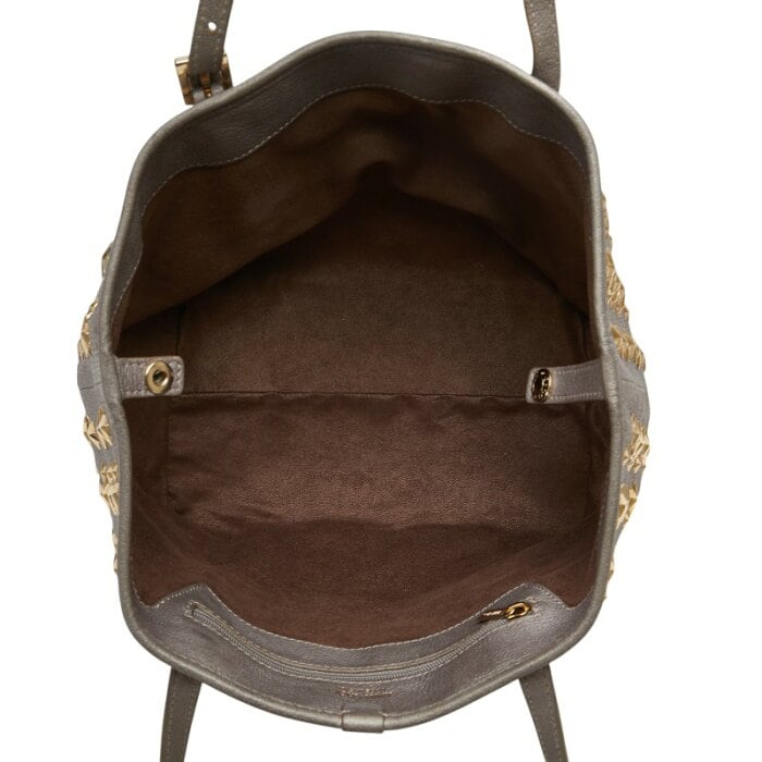ジミーチュウ サシャS スタースタッズ ハンドバッグ トートバッグ グレー ゴールド レザー レディース JIMMY CHOO 【中古】