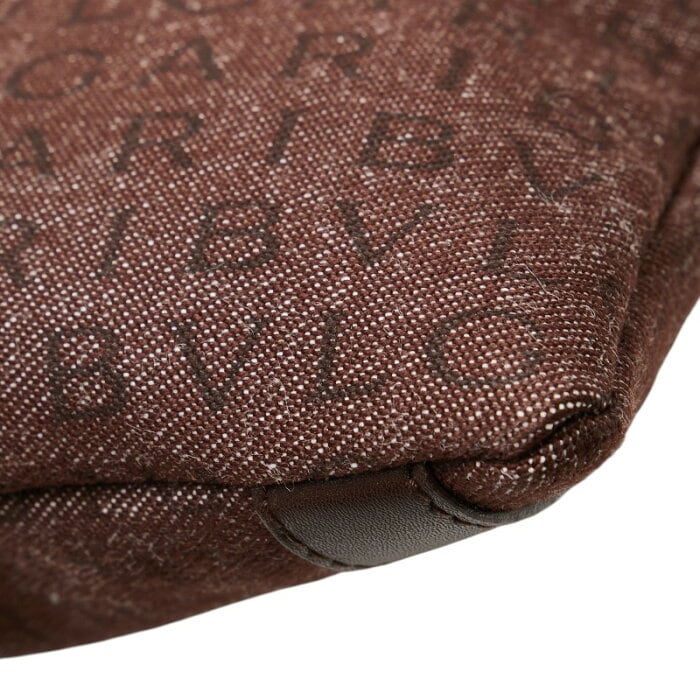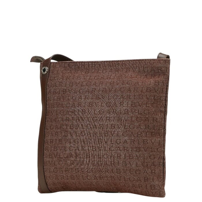 ブルガリ ロゴマニア 斜め掛け ショルダーバッグ ブラウン キャンバス レザー レディース BVLGARI 【中古】