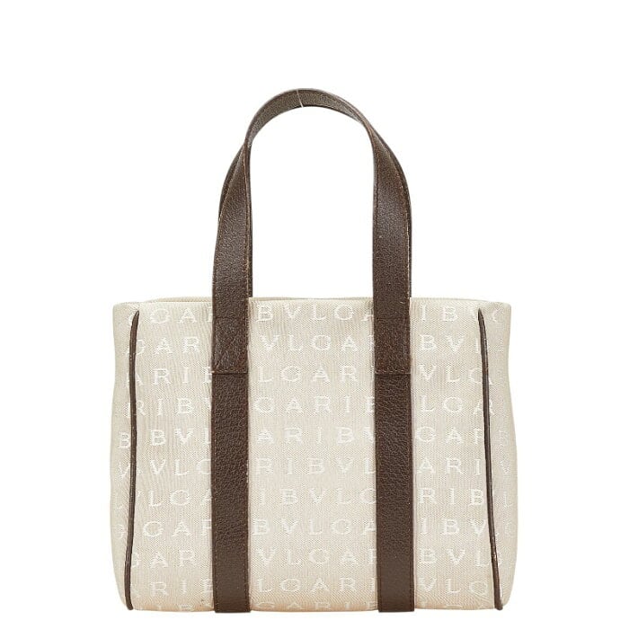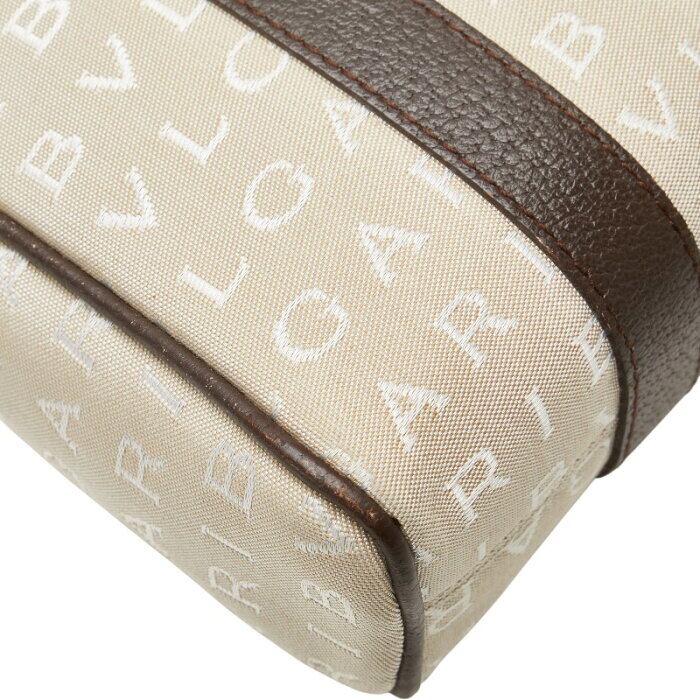 ブルガリ ロゴマニア ハンドバッグ ミニトートバッグ ベージュ ブラウン キャンバス レザー レディース BVLGARI 【中古】