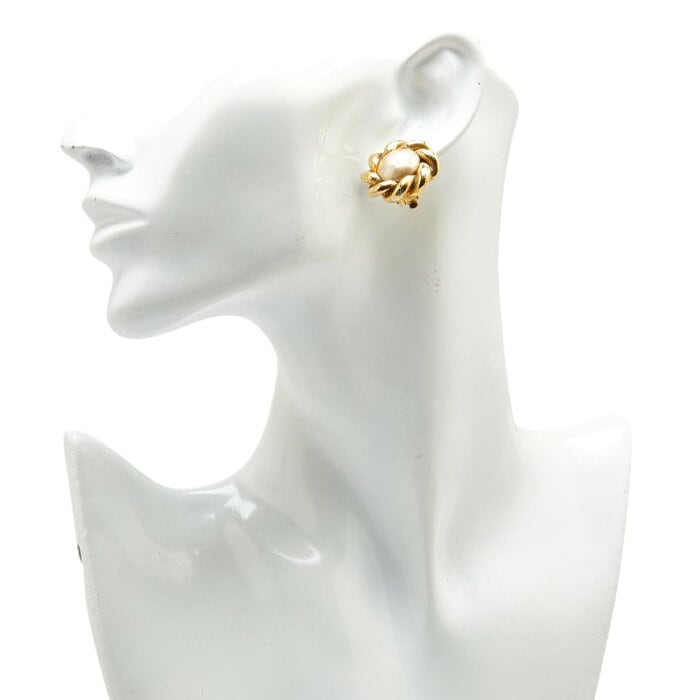 シャネル ヴィンテージ フラワー 花 モチーフ フェイクパール イヤリング ゴールド メッキ レディース CHANEL 【中古】