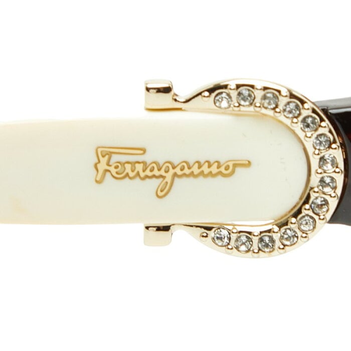 サルヴァトーレフェラガモ ガンチーニ サングラス SF794SK ブラウン ホワイト プラスチック ラインストーン レディース Salvatore Ferragamo 【中古】