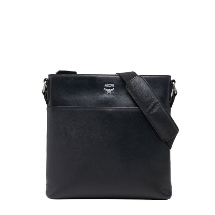 エム シー エム ロゴ金具 斜め掛け ショルダーバッグ ブラック レザー レディース MCM 【中古】