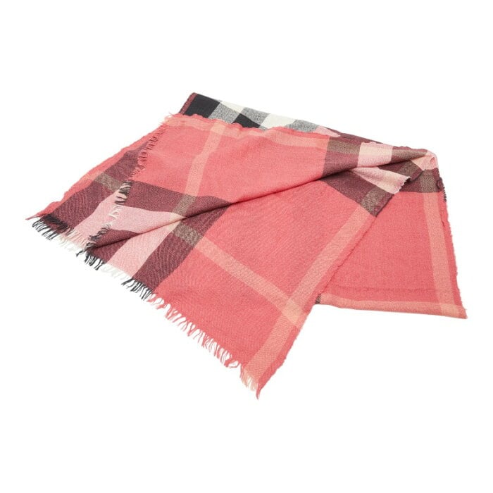 バーバリー チェック ストール レッド マルチカラー シルク カシミヤ レディース BURBERRY 【中古】