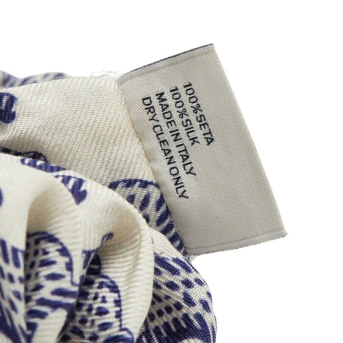 セリーヌ マカダム シュシュ ヘアアクセサリー ホワイト ネイビー シルク レディース CELINE 【中古】