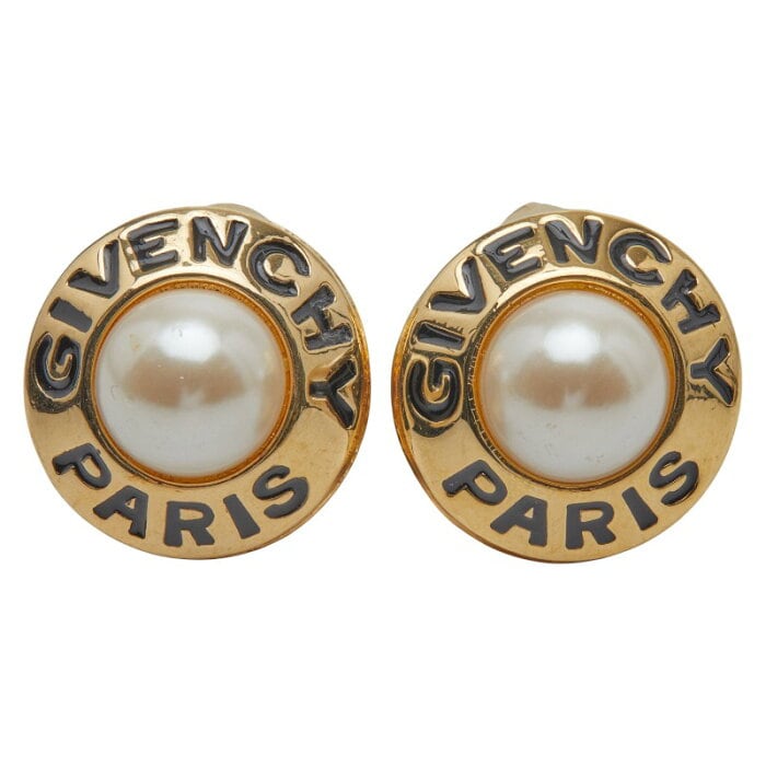 ジバンシー ロゴ パール ラウンド イヤリング ゴールド メッキ フェイクパール レディース Givenchy 【中古】