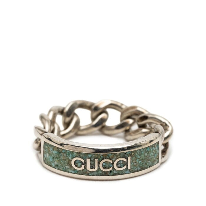 グッチ ゴルメットチェーン リング 指輪 #25 シルバー ライトブルー SV925 シルバー エナメル メンズ GUCCI 【中古】