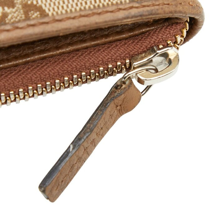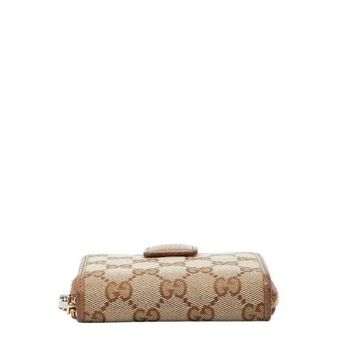 グッチ GGキャンバス - ラウンドファスナー 二つ折り財布 346056 ベージュ ブラウン キャンバス レザー レディース GUCCI 【中古】