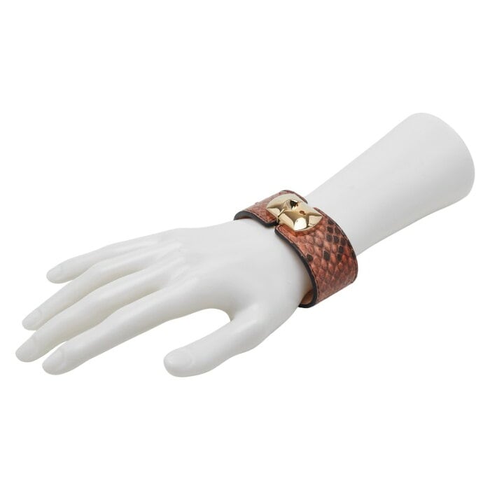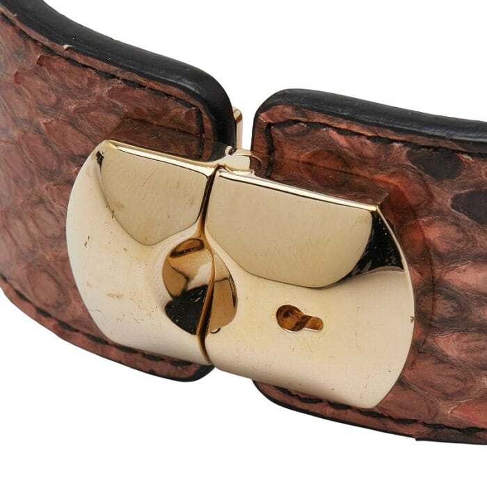 バレンシアガ パイソン バングル サイズ:M ブラウン ゴールド レザー メッキ レディース BALENCIAGA 【中古】