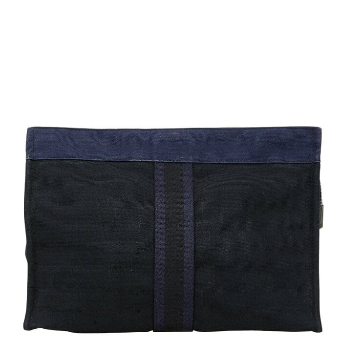 エルメス フールトゥ クラッチバッグ セカンドバッグ ネイビー ブラック キャンバス レディース HERMES 【中古】