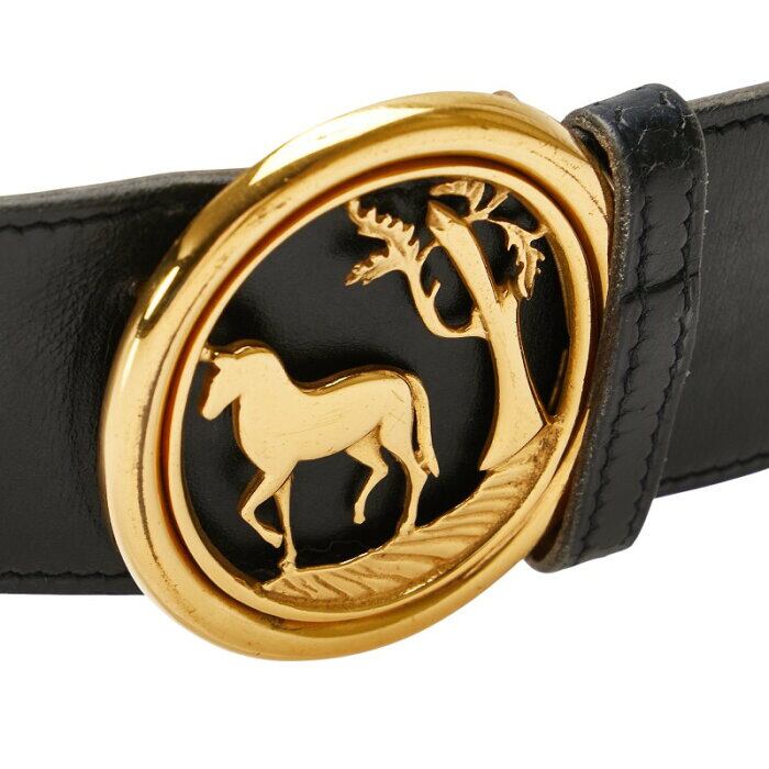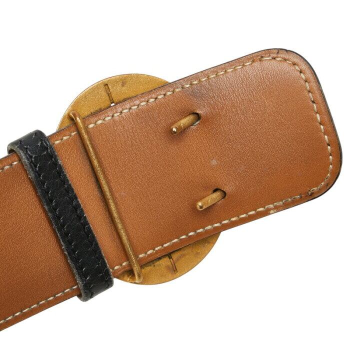 エルメス ホースバックル ベルト サイズ:80 ブラック ブラウン レザー レディース HERMES 【中古】
