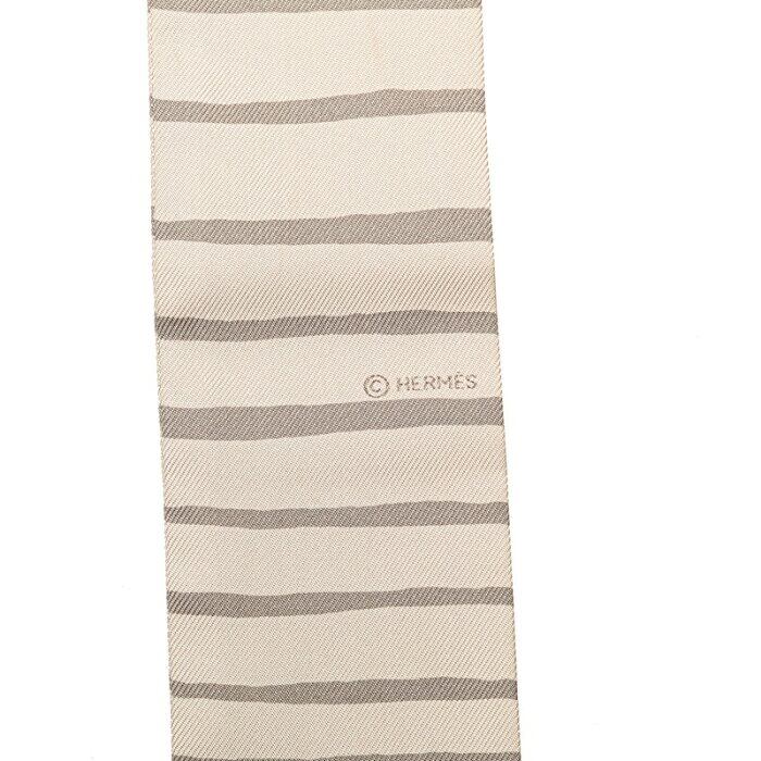 エルメス ツイリー ボーダー スカーフ ベージュ グレー シルク レディース HERMES 【中古】