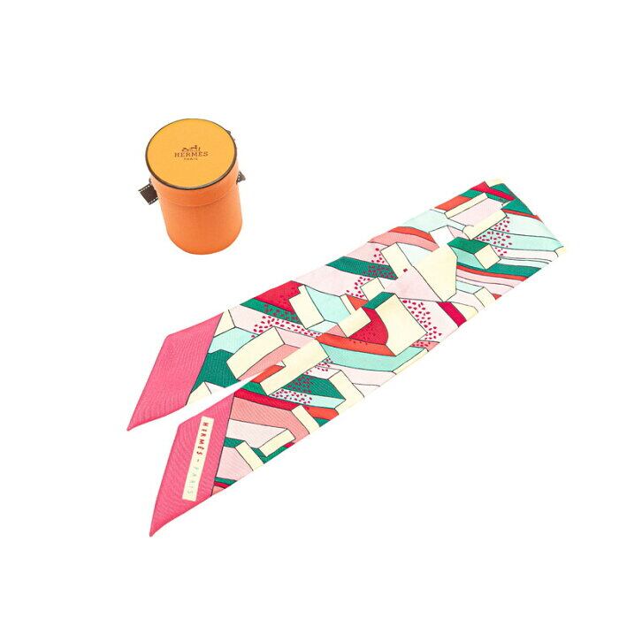 エルメス ツイリー ON A SUMMER DAY オン ア サマーデイ スカーフ ピンク グリーン マルチカラー シルク レディース HERMES 【中古】